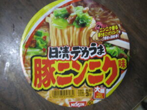 カップ麺 日清デカうま 豚ニンニク味食べました