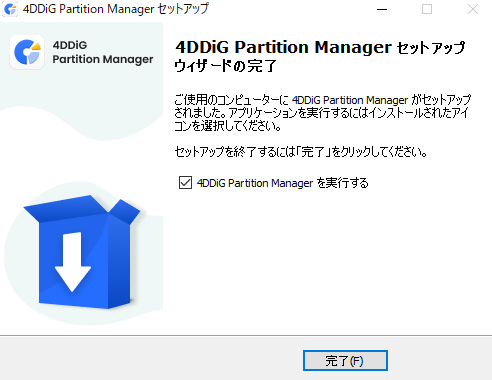 ↑この表示が出たら4DDiG Partition Managerインストール完了です。