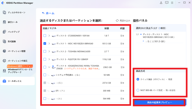 ↑この4DDiG Partition Managerは盗難が心配なSSDやHDDのデータを完全に消去し、復元不可能にすることが可能です。