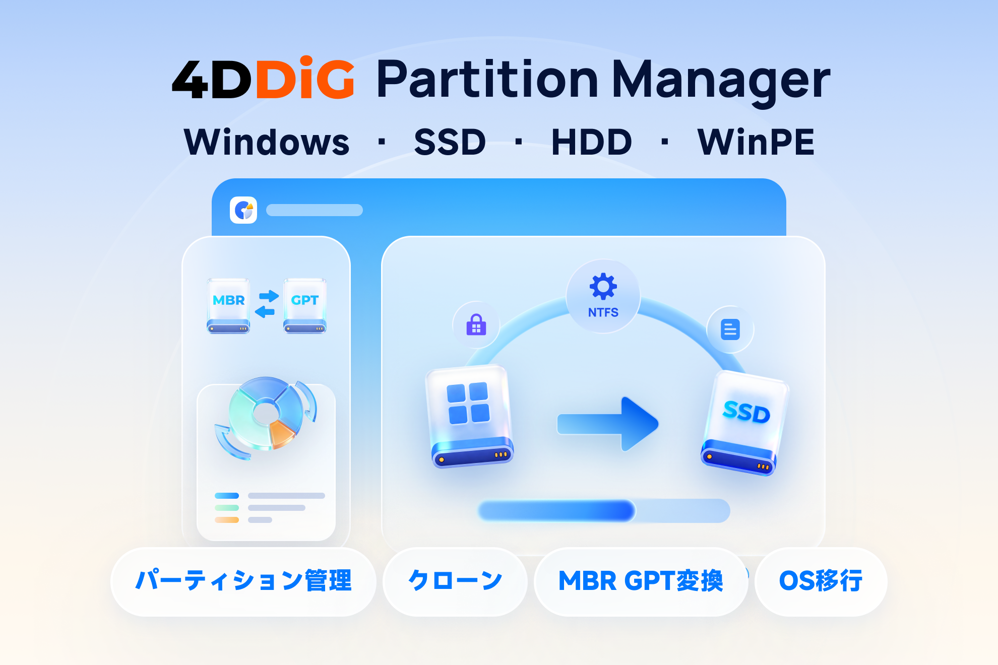 4DDiG Partition Managerを使用するとOSを再インストールすることなく、HDDからSSDに簡単にOSを移行できます。