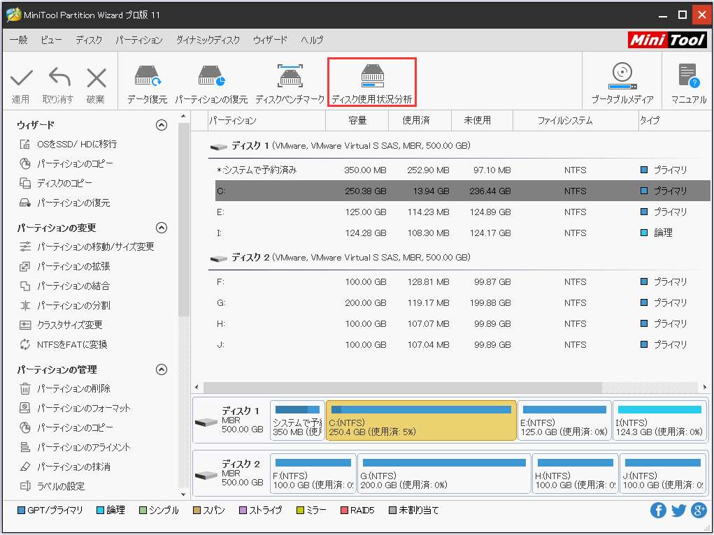 ↑ディスク使用状況分析を使用する方法| MiniTool Partition Wizardチュートリアル