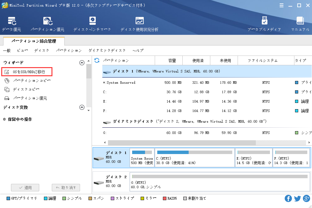 使用者がWindowsまたプログラムを再インストールしたくないあるいはデータを保持したい場合、ぜひMiniTool Partition Wizard の「OSをSSD/HDに移行」機能を使ってみてください。