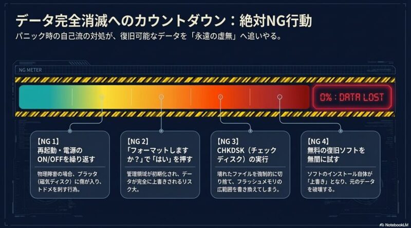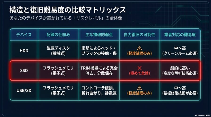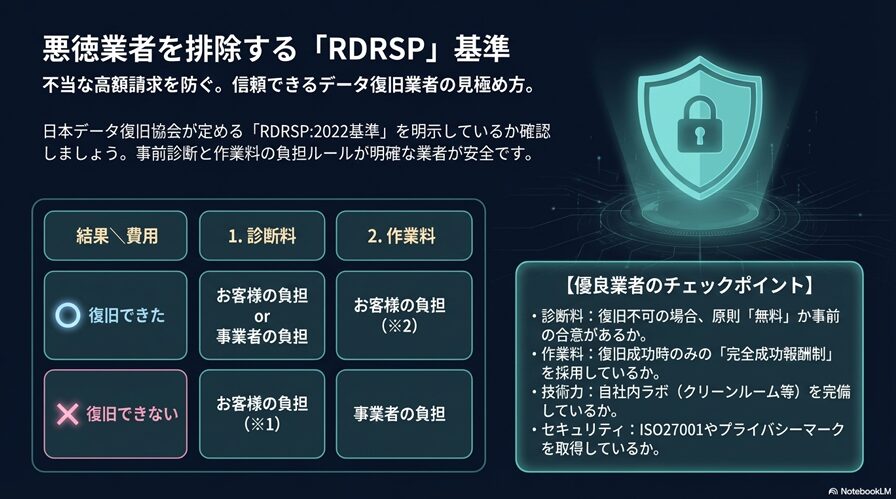 この比較から分かる通り、データ復旧業者は「安さ」だけで選ぶと失敗する可能性があります。