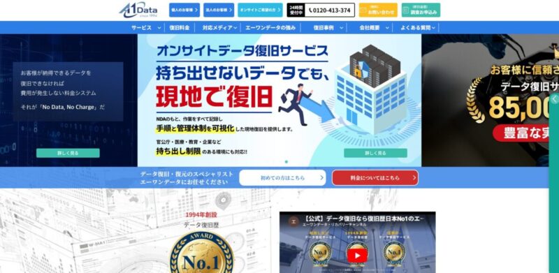 エーワンデータ株式会社は、1994年からデータ復旧サービスを提供している日本でも老舗の企業で、これまでに8万件以上の復旧実績があります。