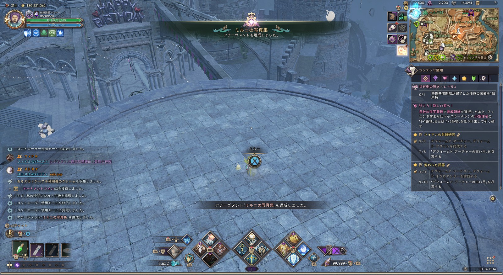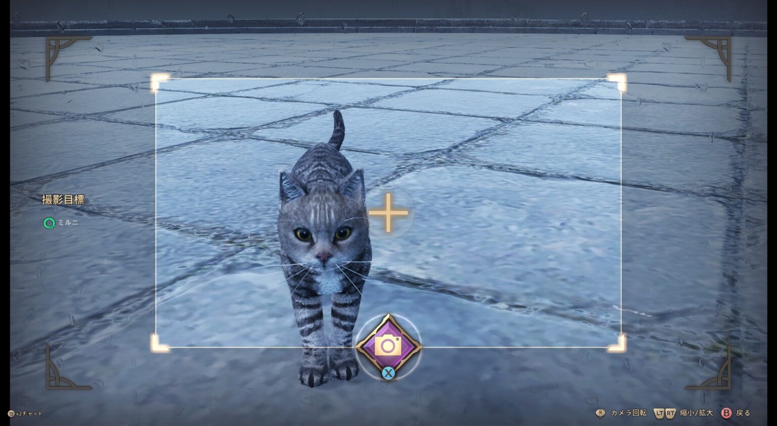 このクエストは猫のミルニを探して写真を撮るとアチーヴメントがもらえます。