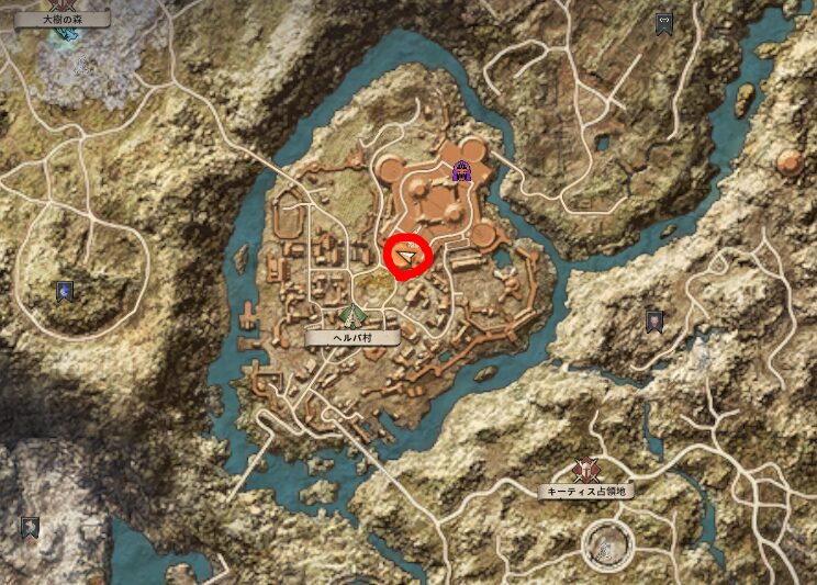 ↑マップだとヘルバ村のテレポート石のすぐ上の塔の上です。