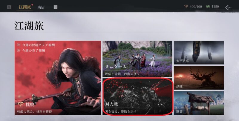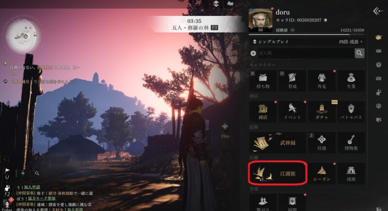 ↑まずはメニューを開いて【江湖旅】を開きます。