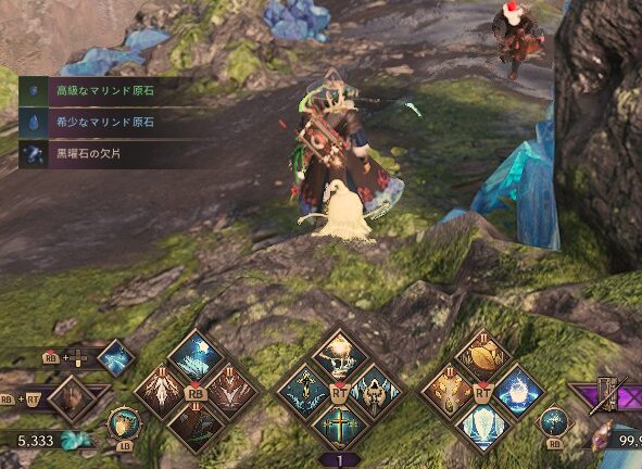この【マリンド原石】は1回採掘しても数分後に沸いて出てくるので背中の上で待機して、何回か採掘できます。