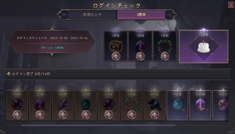 ↑ログインチェックでも個黒曜石の欠片がもらえる時があります。