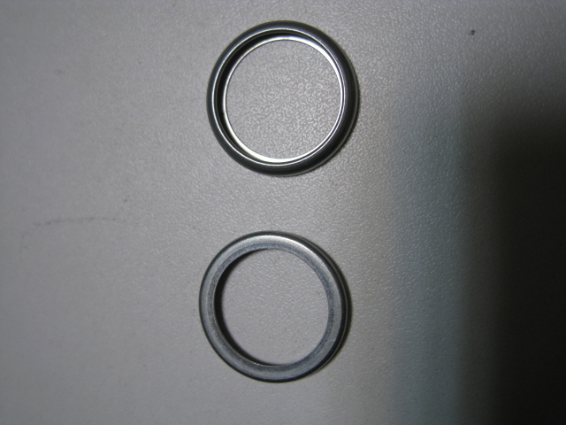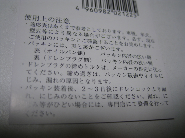 - パッキンには、表と裏がございます。 表(オイルパン側) 裏(ドレンプラグ側) パッキン内径の広い開 パッキン内径の狭い側
