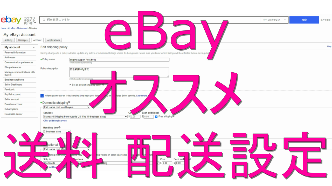 eBayの送料の初出品者向けのオススメ設定を記載しました。