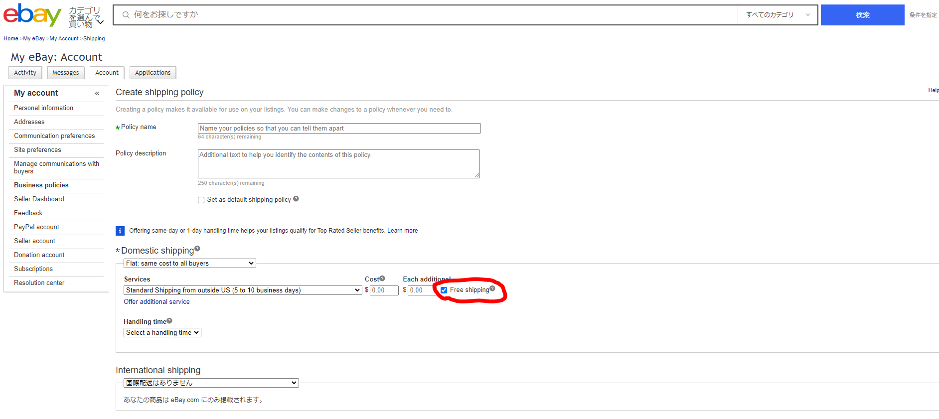 ↑まずはMy eBayのビジネスポリシーのところにログインして入ります。