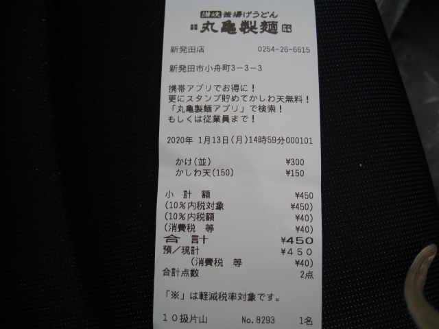 これでかけうどん(並)が300円とかしわ天が150円で450円です!かけうどんだけだったらなんと300円!(2020年1月29日現在)しかも次回から使えるトッピング券付です!