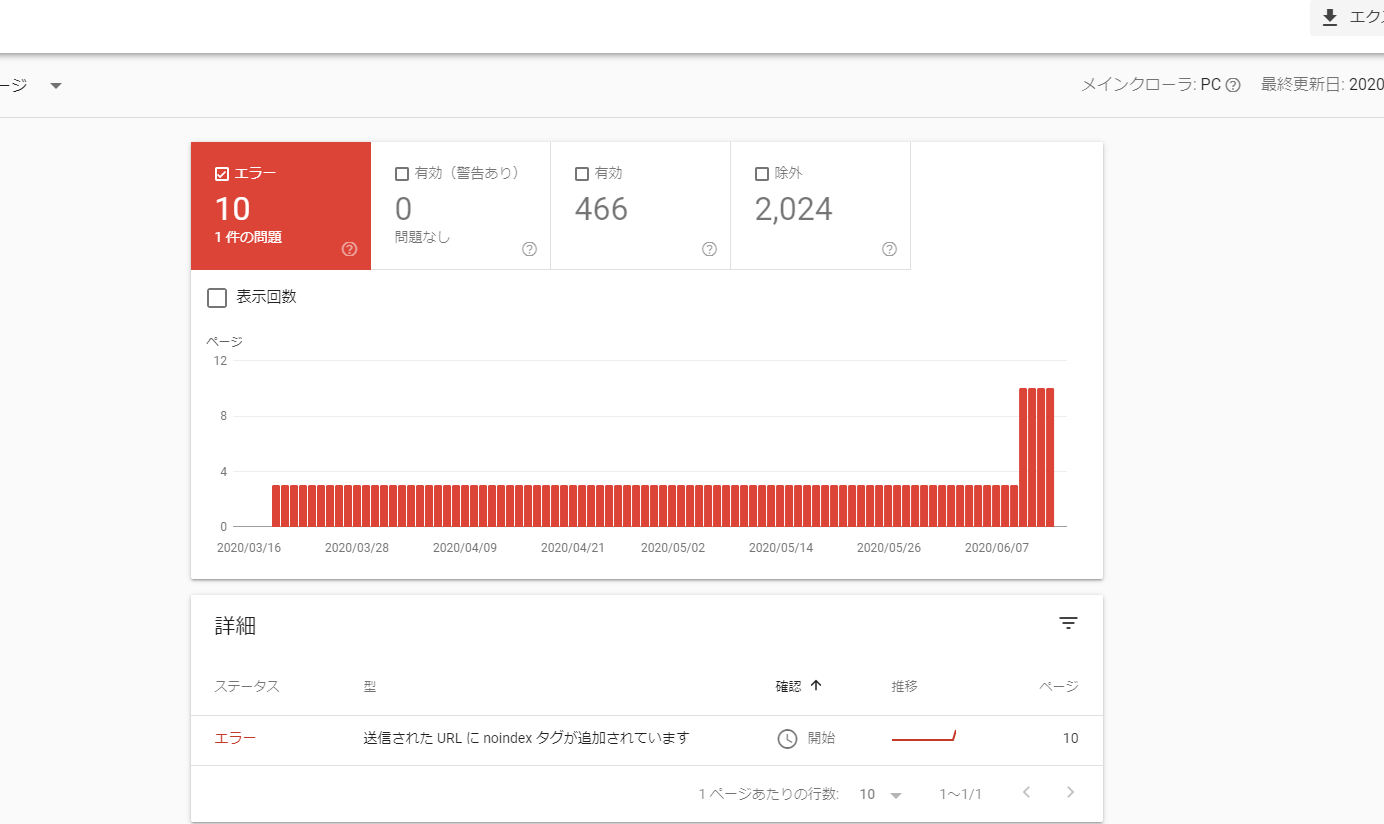 結論から載せますとsearch consoleのガバレッジの所のエラーの所をクリックして、ガバレッジの問題を検証をしたら直りました!(この検証は、自分の場合は10分くらいですぐURLをインデックス登録できるようになりましたが、3日程度かかる場合もあるようです)