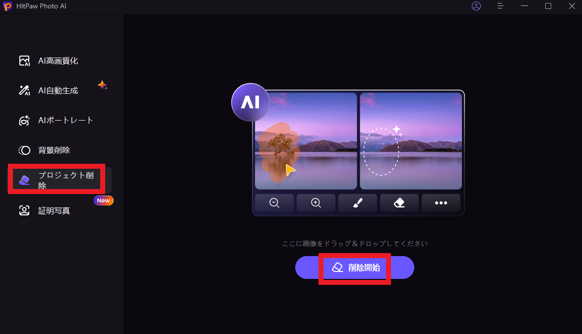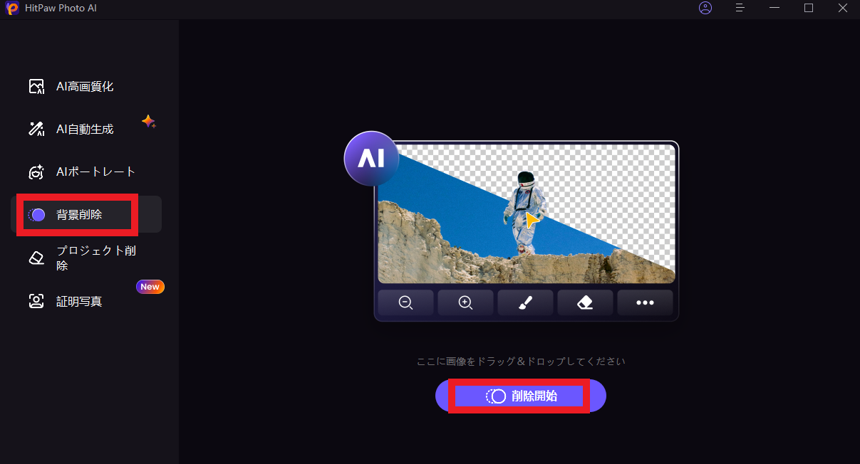 ↑この画面がHitPaw Photo AIのメイン操作画面です。