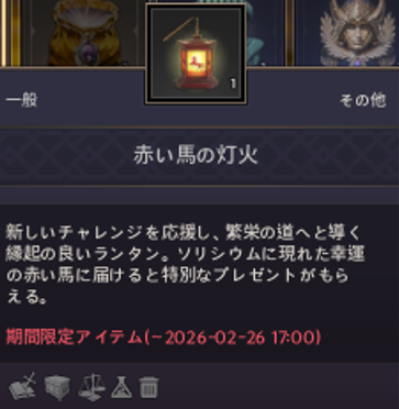 ↑この赤い馬の灯火は各主要都市にある馬の像に「赤い馬の灯火」を使用することで、ソラントの入った「幸運の赤封筒」を獲得できます。