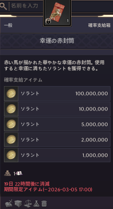 ↑「幸運の赤封筒」を使用するとソラントを入手できます。