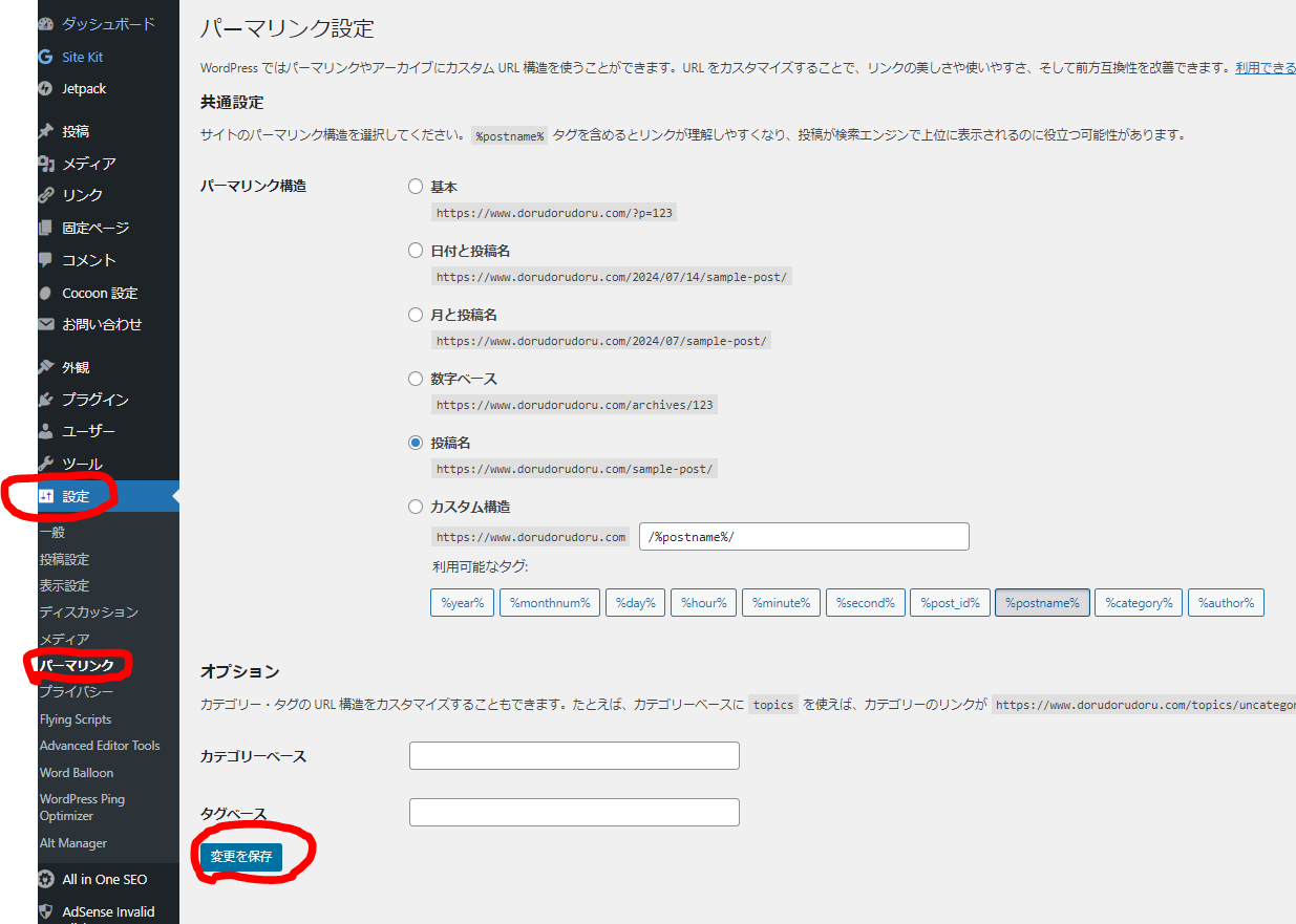 ↑パーマリンクエラーが発生した時はパーマリンクの変更を保存しなおすだけで良いようです。