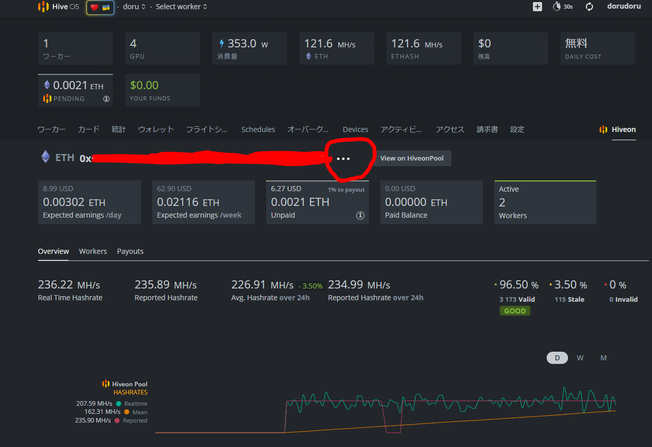 このPolygon(MATIC)だと0.005ETHからHive OSから支払いが可能です。