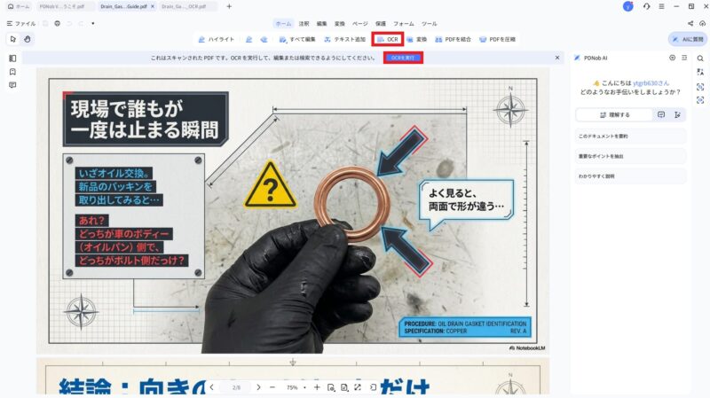 🔍 OCR機能(画像PDFも編集可能に)