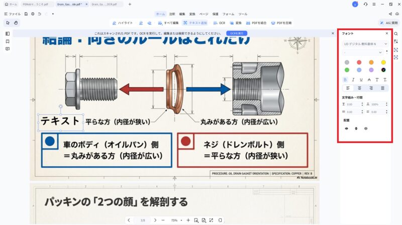 PDNob 2.0のPDF編集は、かなり細かいところまで調整できます。