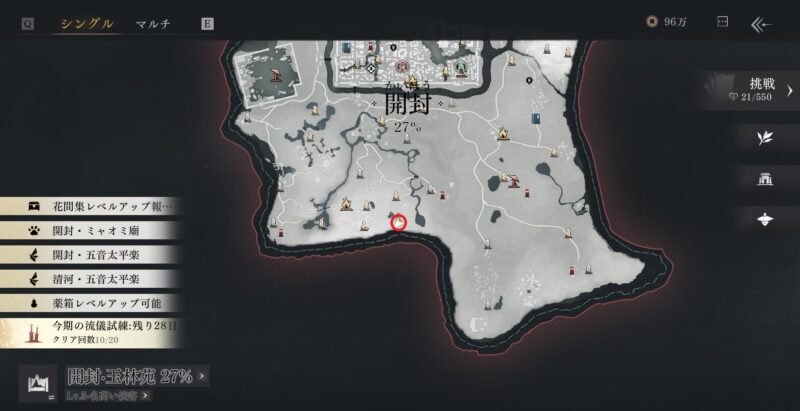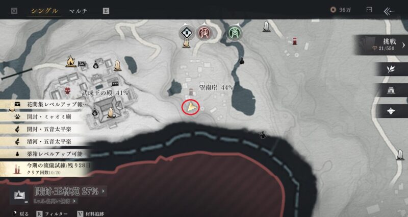 ↑開封エリアの下のほうの望南崖のワープ地点の、【古い村の遺跡】の拠点の近くの扉を開けます。