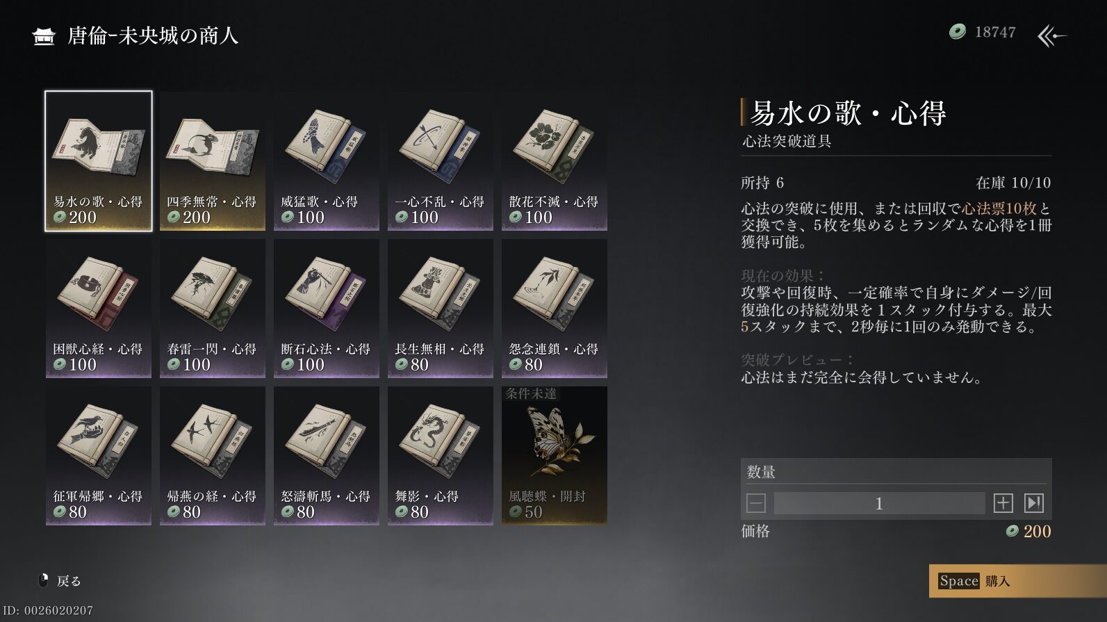 この未央城の商人・唐宝からは暮らしの雑貨に江湖の奇術に武林の秘伝書などを購入可能です。