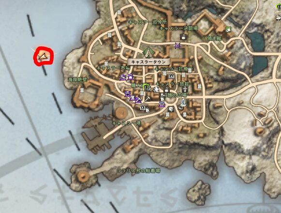 ↑キャスラータウンの西の海側の岩側にあります。