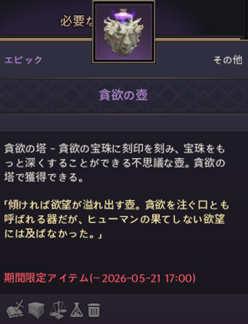 貪欲の塔は24時間でなくなるので、入手したらすぐに使ったほうが良いと思います。