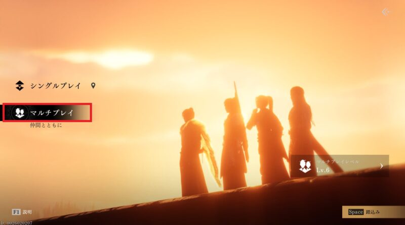 ↑マルチプレイ、シングルプレイの項目が出るので【マルチプレイ】を選択します。