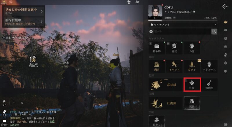 ↑メニューの【任務】のところから【本章】を進めると簡単に10レベルまで上がりますので、10レベルになったらオンラインプレイが解放されます。