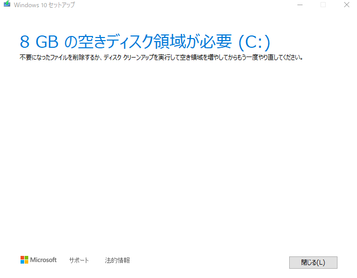 Windowsインストールメディアを作ろうとして【8GBの空きディスク領域が必要(C:)】と表示されるときの対処法